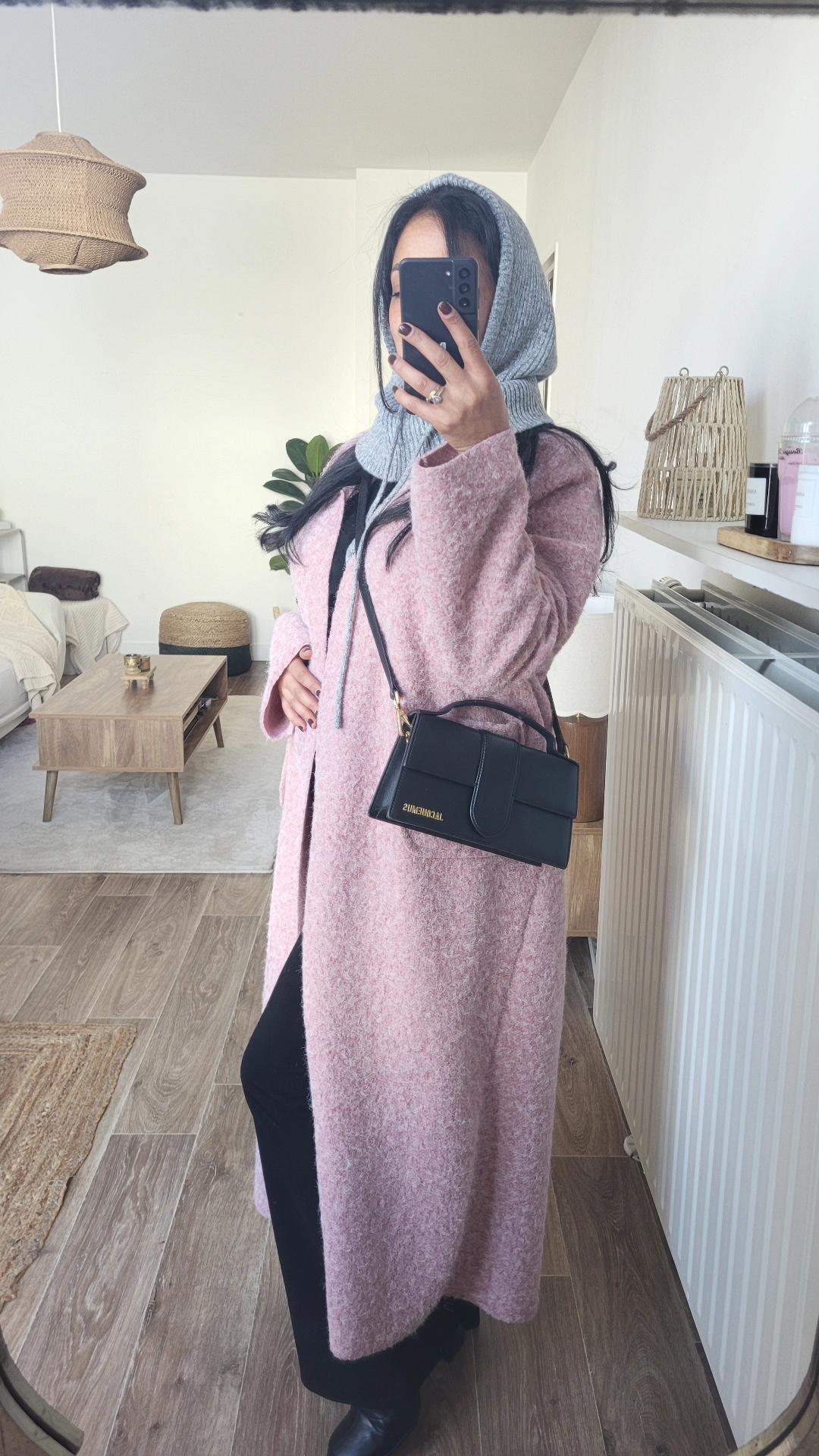 GILET LONG FEUTRE ROSE POUDRE